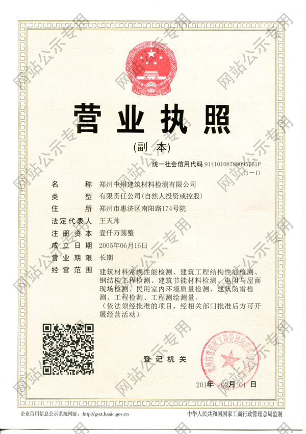 鄭州中州建筑材料檢測有限公司成立于2005年, 注冊資金1000萬元,是通過河南省質量技術監督局計量認證、河南省住房和城鄉建設廳批準,具有獨立法人資格的第三方檢測機構。
